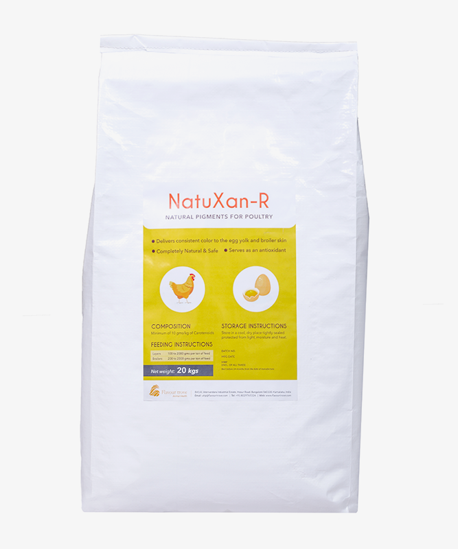 NatuXan-R is a natural red pigment based on bioactive Carotenoids, extracted from red pigmented plants that delivers consistent uniform colour to the egg yolk & broiler skin.